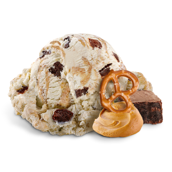 Παγωτό φυστικοβούτυρου με σιρόπι από γλυκό και αλατισμένο pretzel και κομμάτια brownies